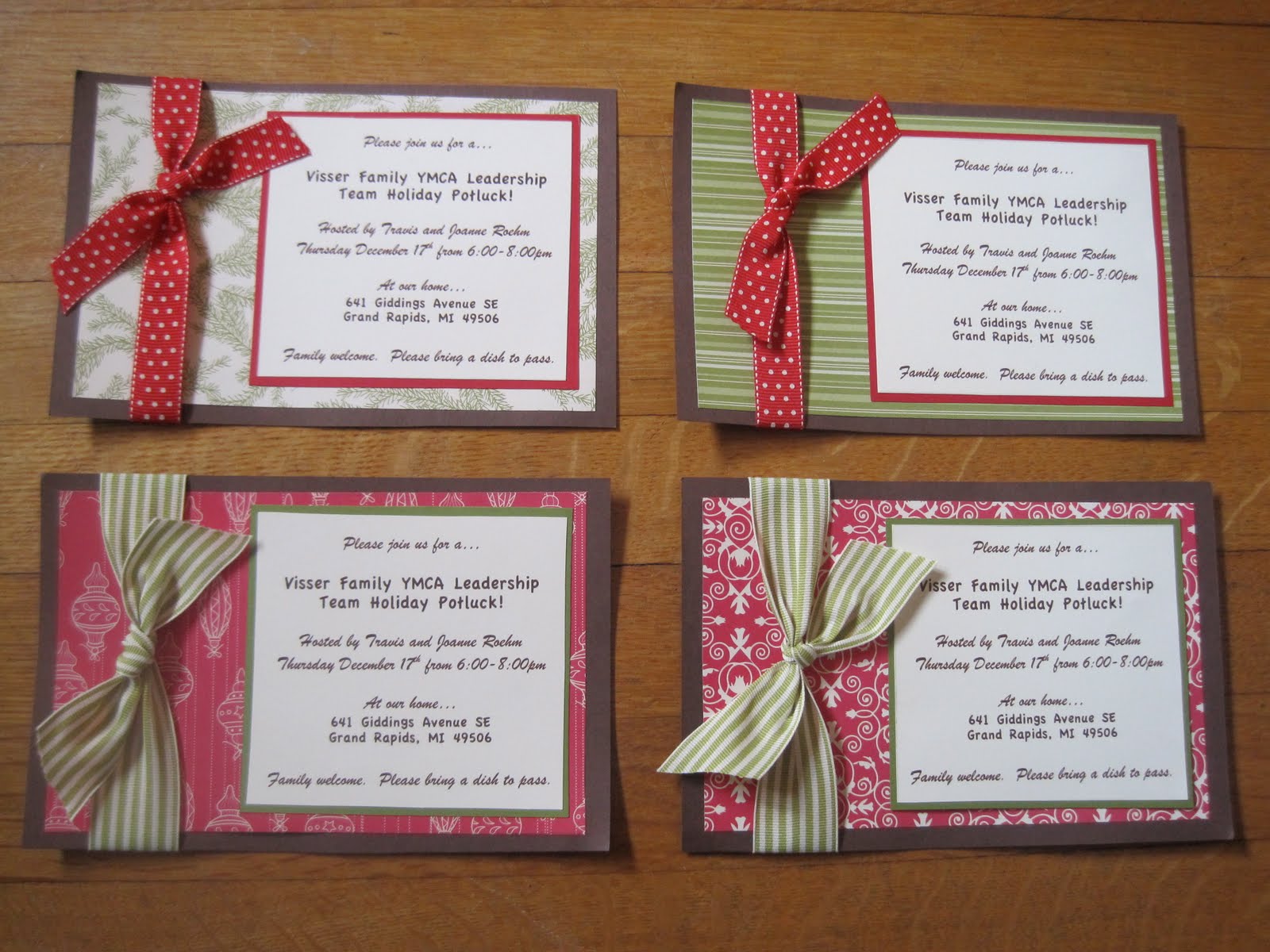 One thing I love about the Holidays is that they give me lots of opportunities to play host. I LOVE to play host! Travis and I are hosting a Holiday get together for his team at work, so I whipped up some invitations for him to pass out.