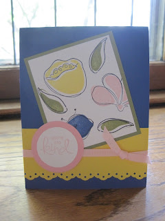 The Awash With Flowers Set is a sneak peak set from the new 2010-2011 Idea Book & Catalog which will be released this summer. You can get this set in either wood or clear mount for the month of April only, then it will be back in the summertime. This is the perfect set for summer showers, birthdays, Mother's Day, baby showers, etc. I've had fun playing around with it...