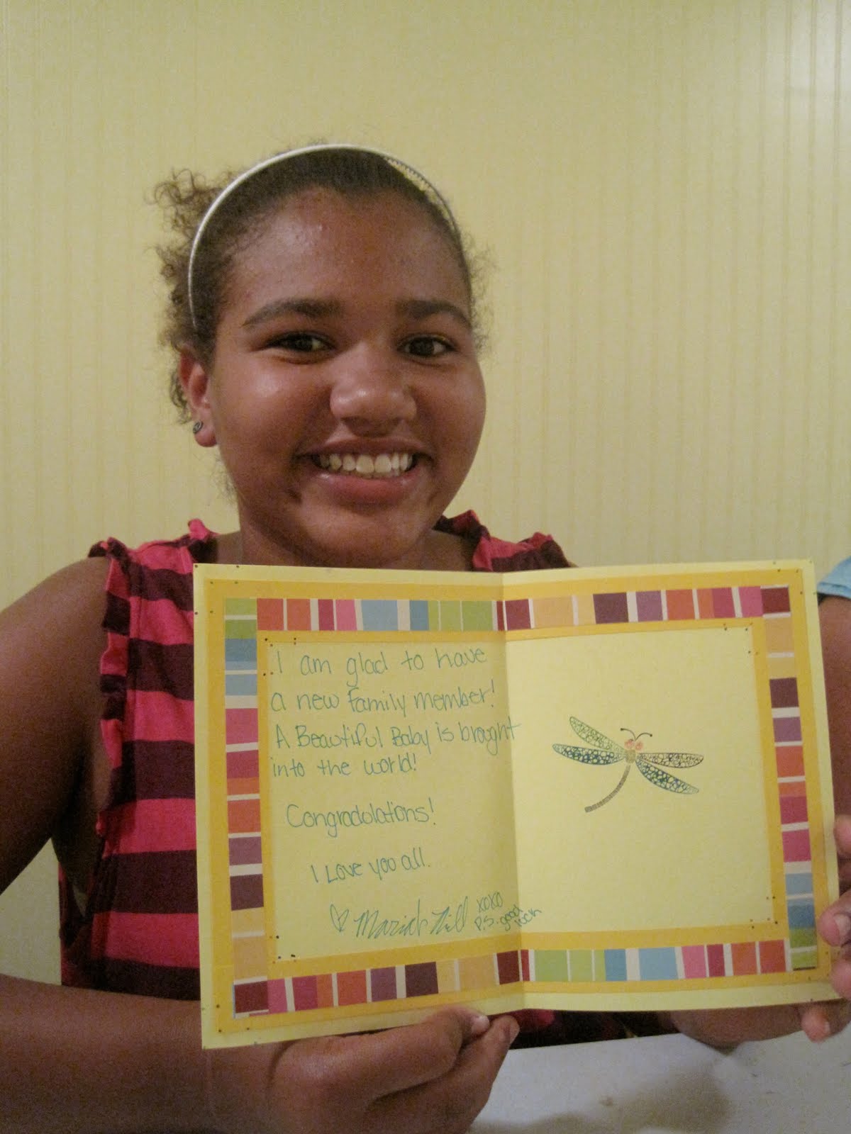 And Mariah is ALWAYS so creative. She used the Bugs & Kisses stamp set with some Stampin Write markers and a couple of circle punches to create a card for a new baby in her family. She did a great job!